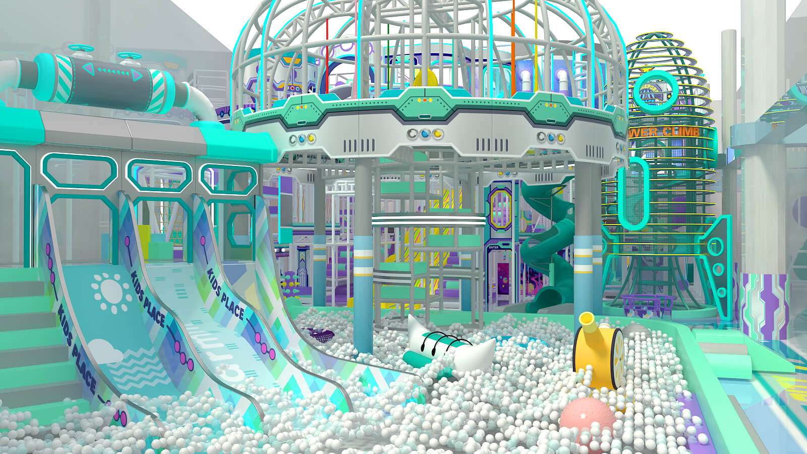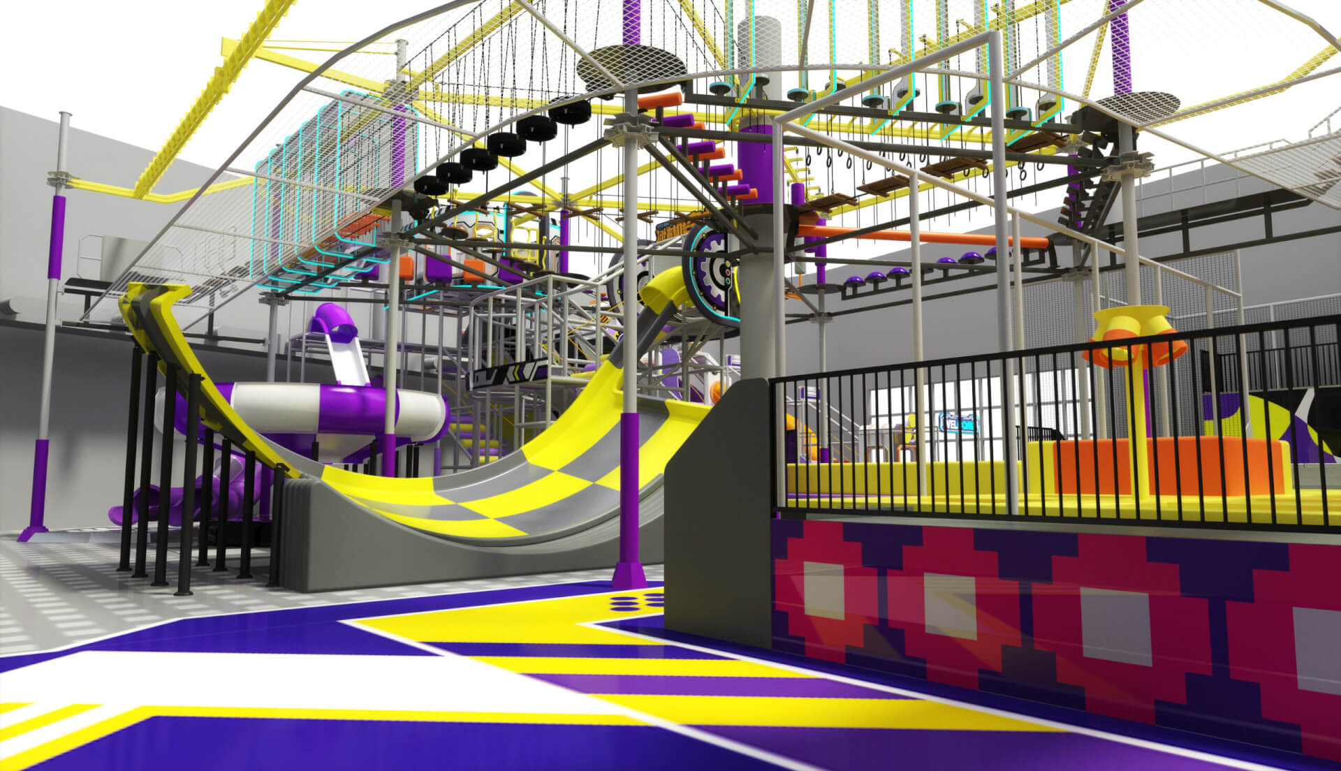 Adventure World is the core activity zone of the project. By using multi‑level structures and combined play systems, the indoor space supports a wide range of activities within a limited footprint.