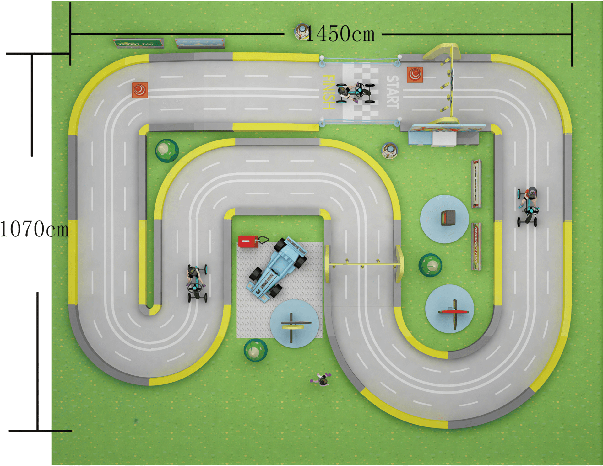 Yes, Track Customization is a key service. We offer Integrated Design and Project Management to tailor the Go-kart and Biking area’s shape, size, and thematic elements to any specific floor plan. Our designs ensure the racing and Biking Area experience flows seamlessly with surrounding attractions and Indoor Playground zones.
