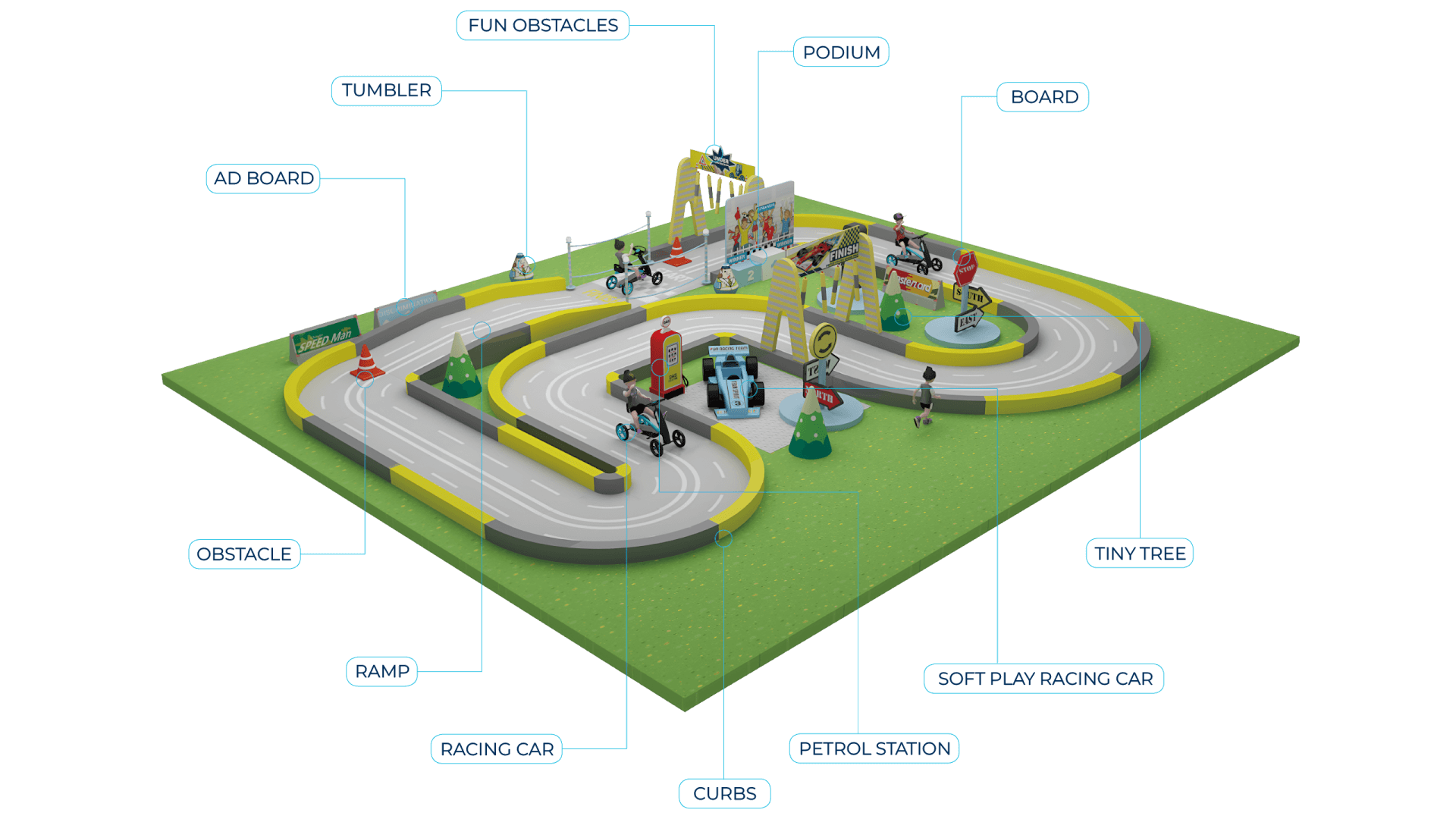 We offer three options—each tuned for a different age band and play intensity, with matching track layouts: