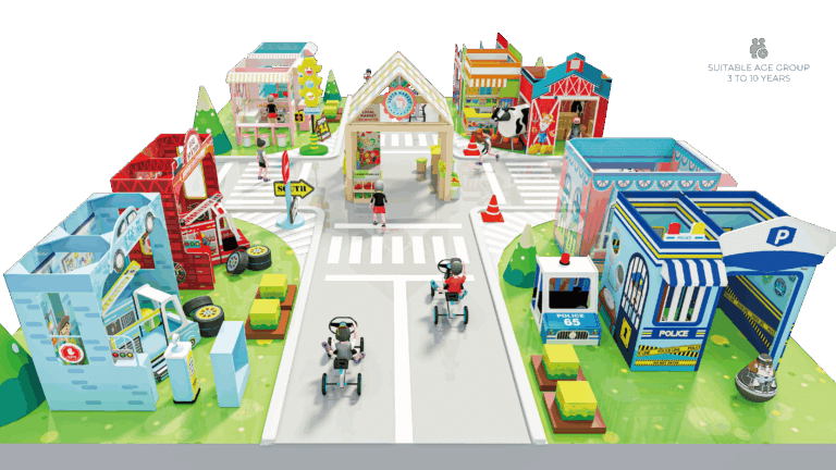 Funlandia’s Mini Town series offers imaginative indoor “cities” for children to explore, role-play, and create. Each environment includes themed spaces, toys, props, and child-sized furniture for immersive play. The Avenue Series features large, family-friendly Playhouses for shared fun, while the Lane Series provides smaller, cozy spaces ideal for younger kids. For a unique attraction, Funlandia Design Studio creates fully customized Mini Towns with detailed architecture, storytelling, and role-play settings, seamlessly integrated into any FEC or adventure park.