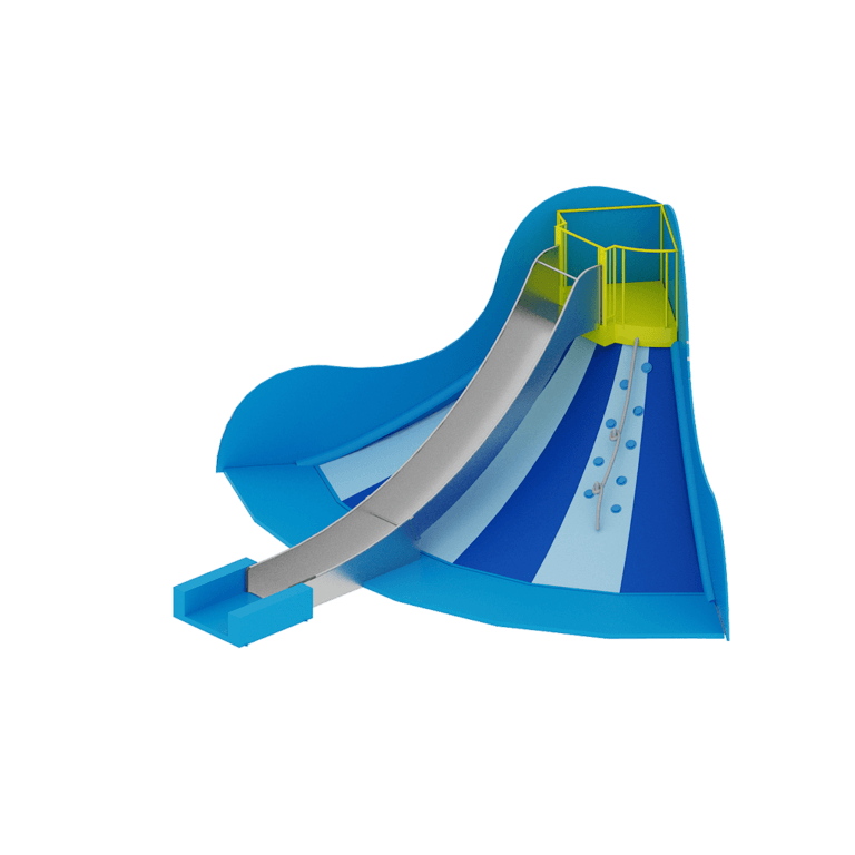 The Volcano Slide incorporates a critical design system to proactively address and mitigate common climbing injuries, going beyond minimum compliance requirements.