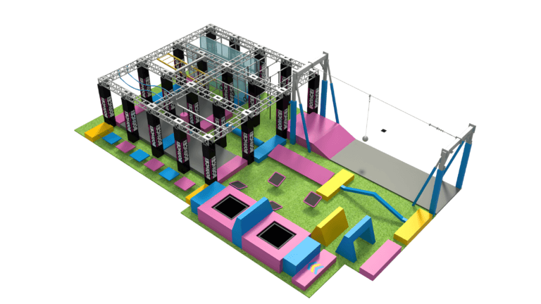 Single Level Warrior Courses deliver a full-scale obstacle challenge within a single-layer, ground-based layout. Players navigate from start to finish through a mix of floor and hanging obstacles that test speed, agility, and coordination. Built with a heavy-duty truss structure to ensure safety and stability, the course can be custom-designed to complement your park’s theme and stand out from the competition.