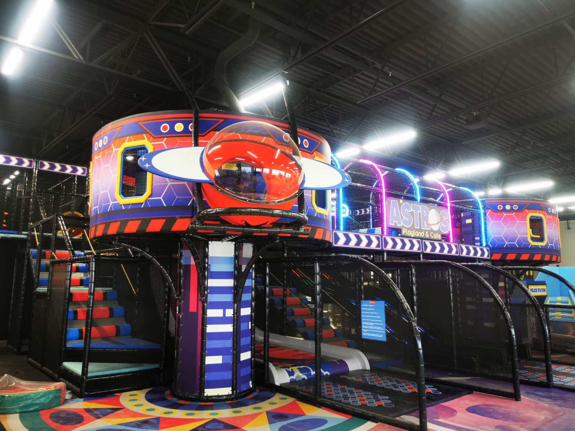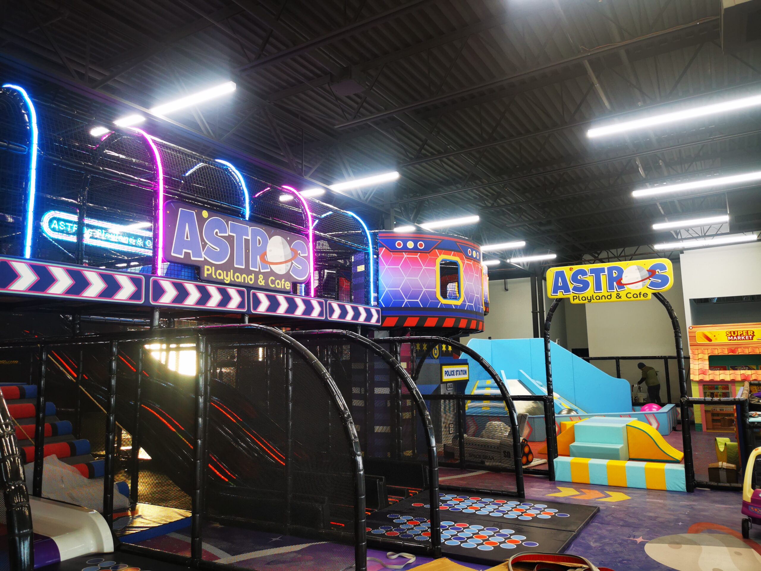 Located in Oak Creek, WI, Astros Playland is a 580 sqm immersive family entertainment center designed to transport visitors into an intergalactic adventure. The facility features a complex, multi-level Indoor Playground structure, engineered to maximize vertical space while offering diverse physical engagement for children of different age groups.