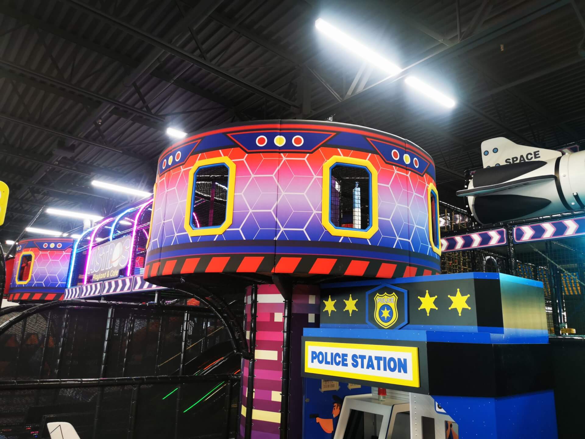 The custom design seamlessly integrates Challenge Obstacles and dynamic slides into a cohesive cosmic theme, blurring the lines between structural equipment and decorative art. Completed with Playhouses zones and dedicated party rooms, this project exemplifies Funlandia’s ability to deliver safe, high-capacity, and thematically rich environments that drive family interaction.