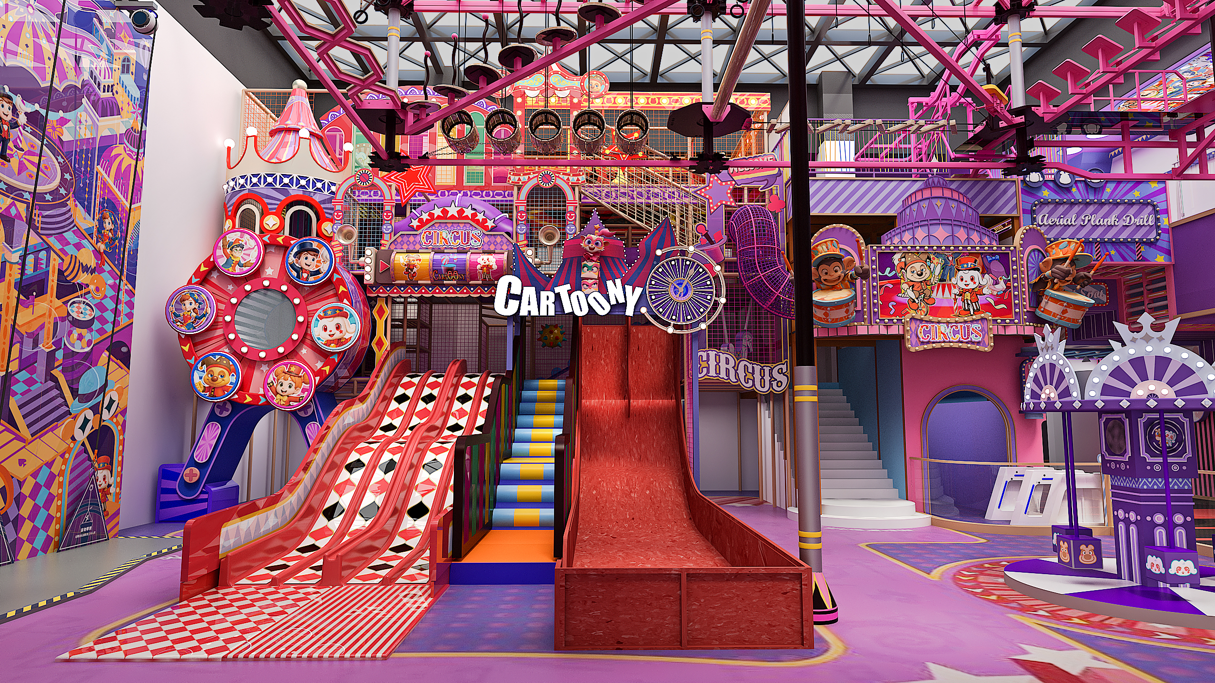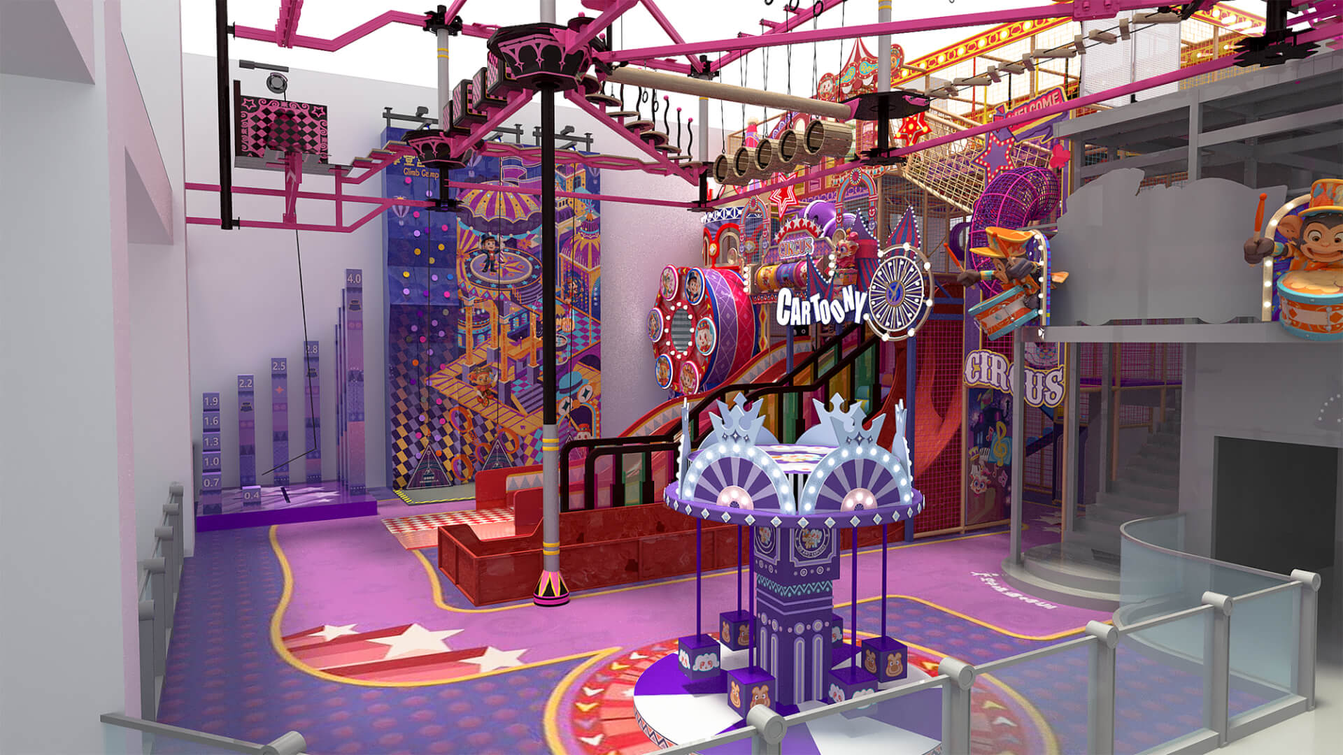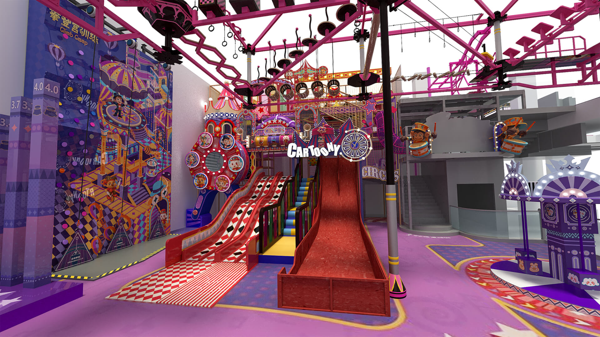 In Shanghai, Funlandia has unveiled Circus Wonder Playland—a fully immersive indoor playground inspired by the magic of the big top. Every area is infused with vibrant circus motifs, from whimsical patterns to lively mechanical animations, creating a dazzling visual journey for guests.