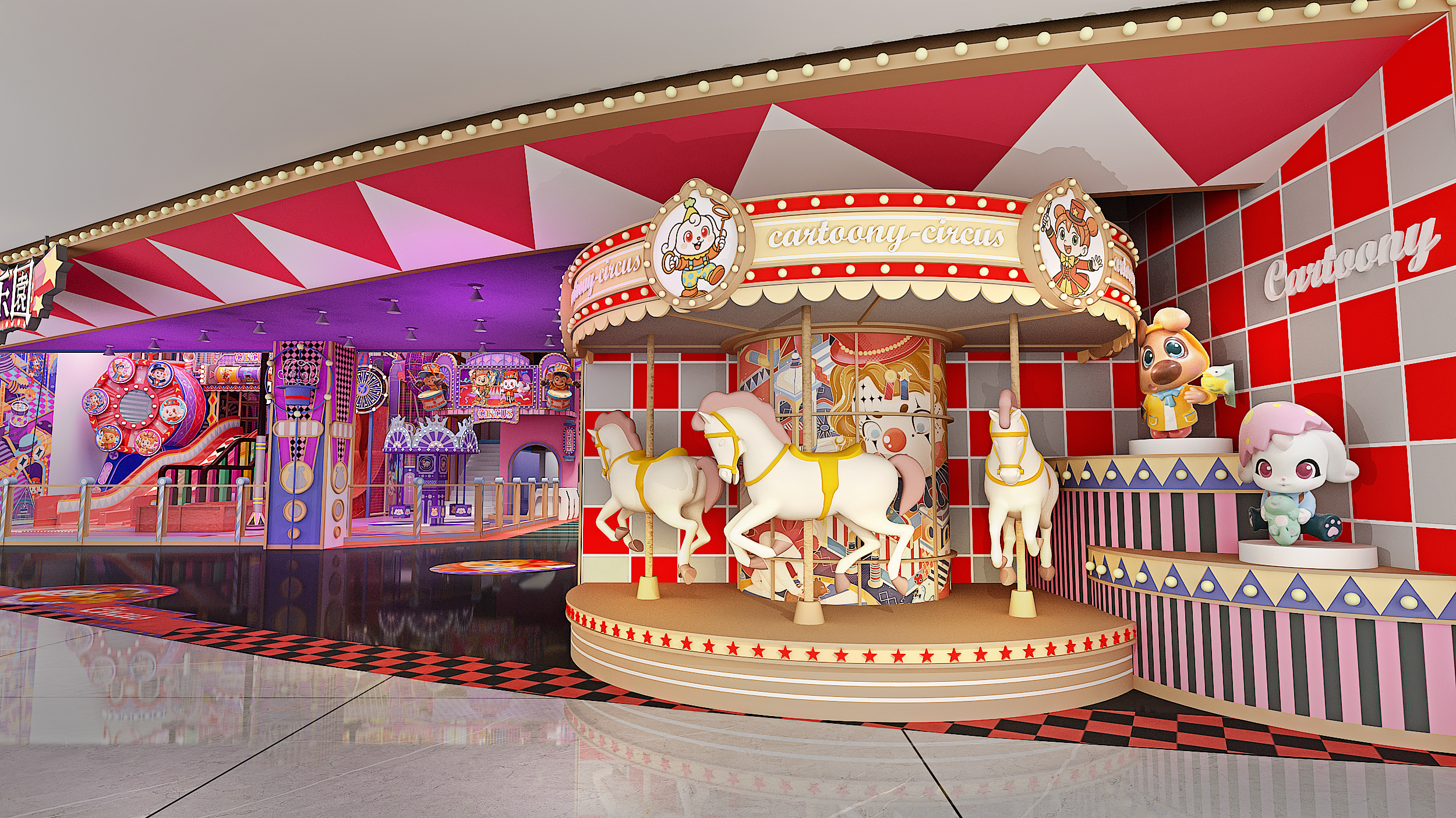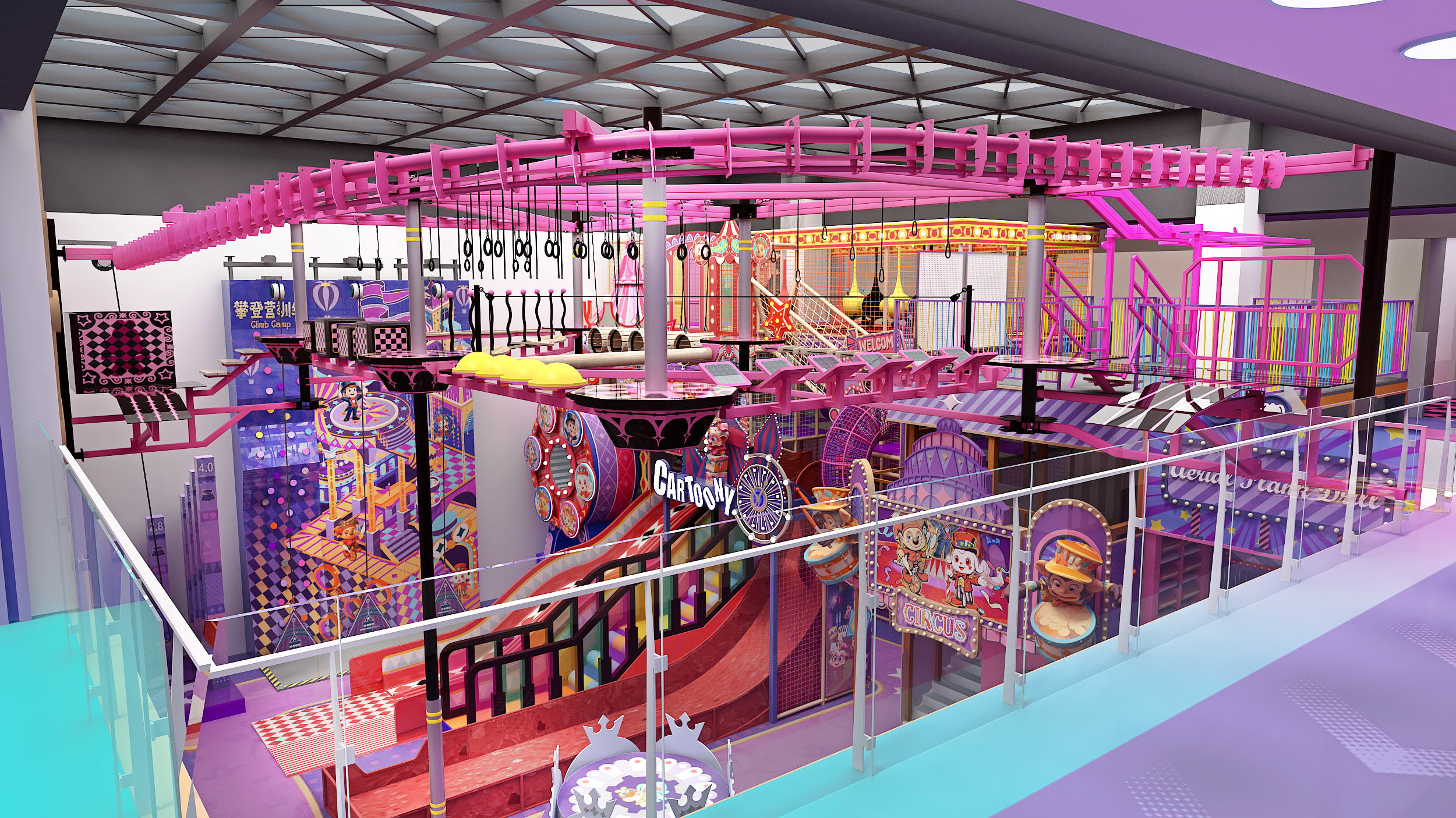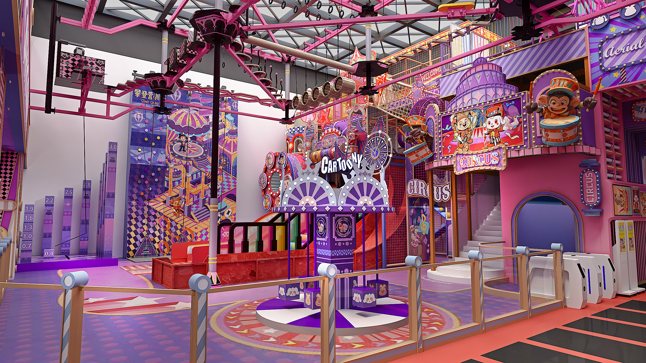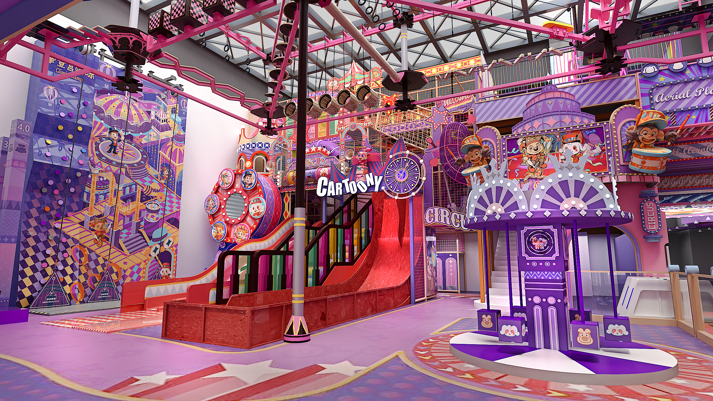 In Shanghai, Funlandia has unveiled Circus Wonder Playland—a fully immersive indoor playground inspired by the magic of the big top. Every area is infused with vibrant circus motifs, from whimsical patterns to lively mechanical animations, creating a dazzling visual journey for guests.
