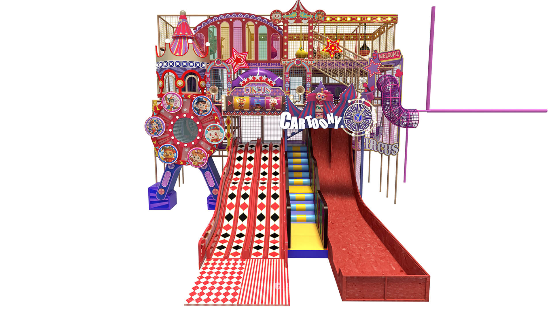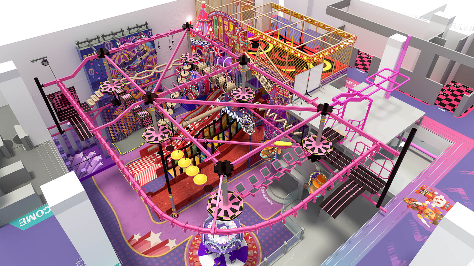 The park merges classic play equipment with dynamic challenges, including Indoor Playground structures, Climbing Walls, Rope Courses, Trampolines, and the thrilling “Super Runio” zone. Carefully planned layouts maximize space, offering endless play possibilities while keeping the flow energetic and engaging. It’s a multi-sensory adventure where imagination, movement, and spectacle come together in perfect harmony.