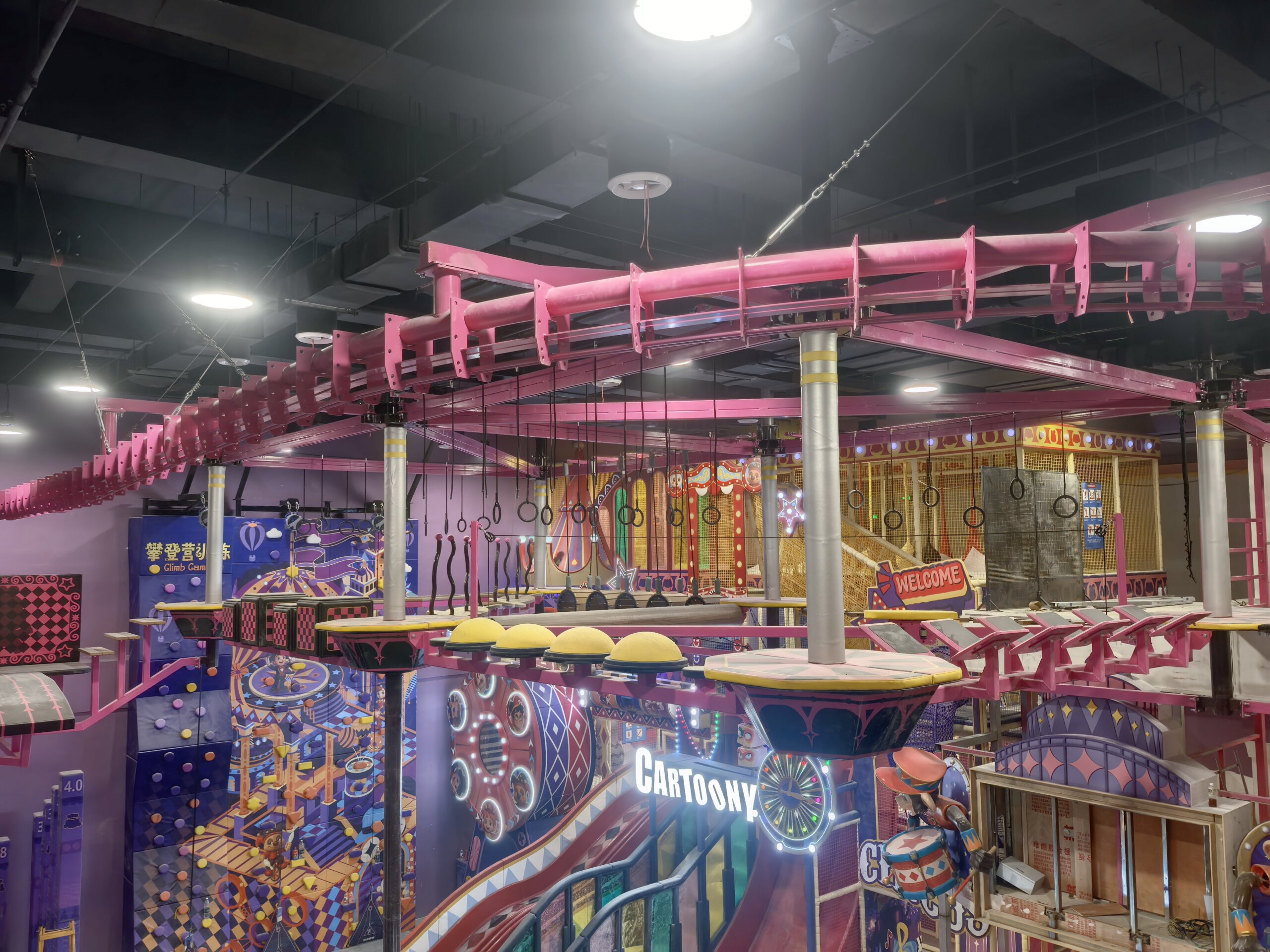Trampoline Park, Rope Courses, Shuttle Zipline, Climbing Wall, Indoor Playground, Toddler soft play, Ball Pool, Super Runio -