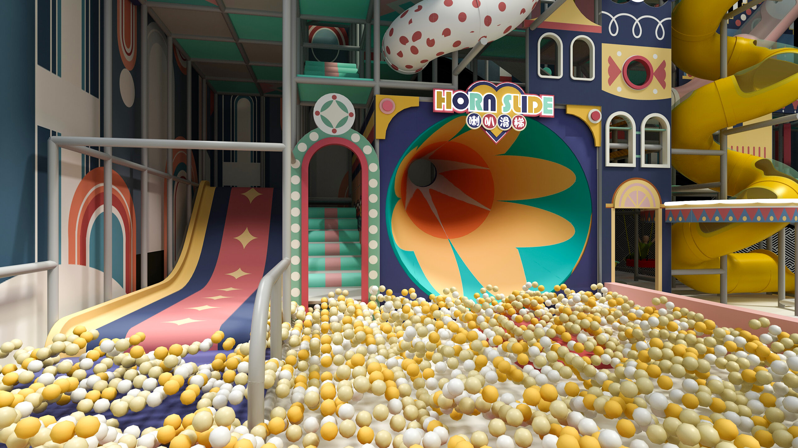 Each play element—from the Soft Play to the Climbing Wall—is carefully selected to promote active play, social connection, and cognitive growth. Enhanced by dynamic lighting and signature branding, the space maximizes every corner to deliver a safe, energetic, and unforgettable play experience.
