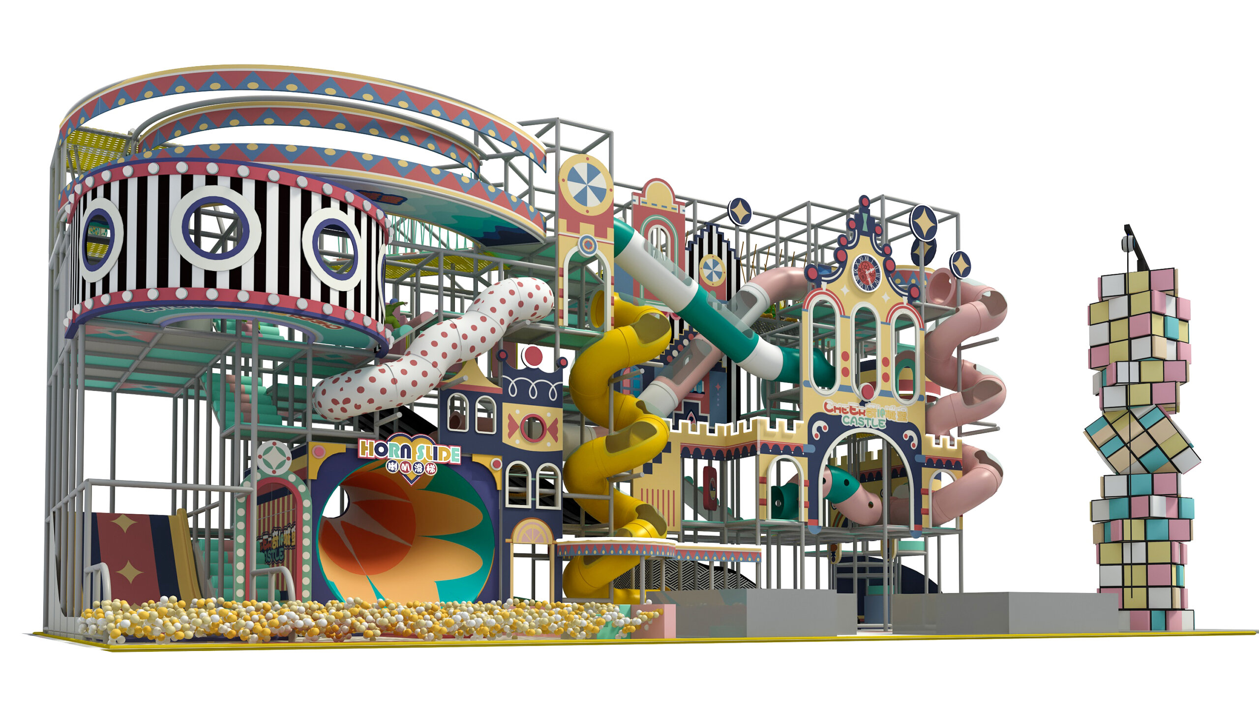 Cheer Castle in Wanning, China is a vibrant Children Play destination designed to inspire imagination and movement. The park integrates colorful Indoor Playground, Stainless Steel Slides, and interactive Challenge Obstacles, offering endless fun and excitement for kids of all ages.