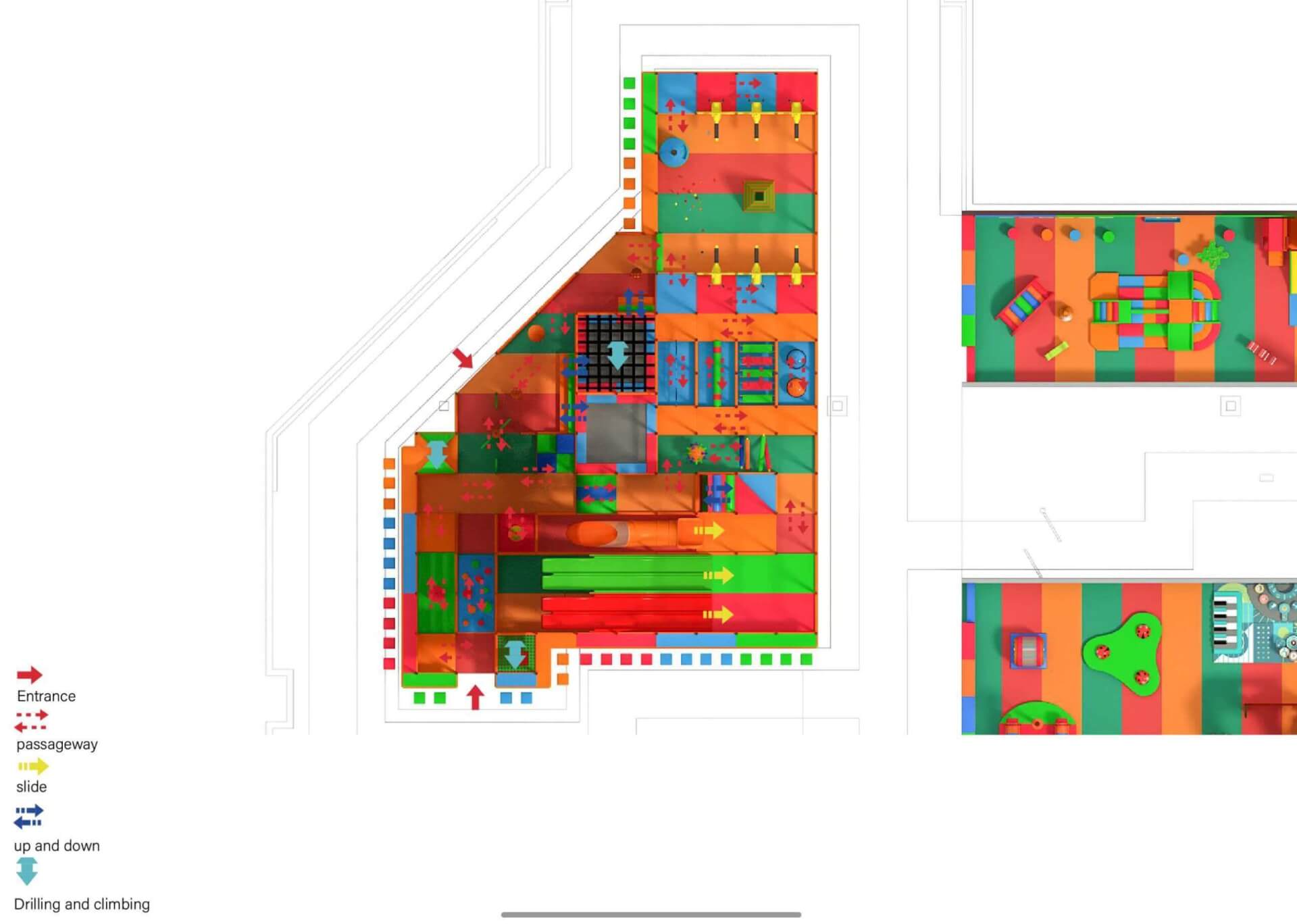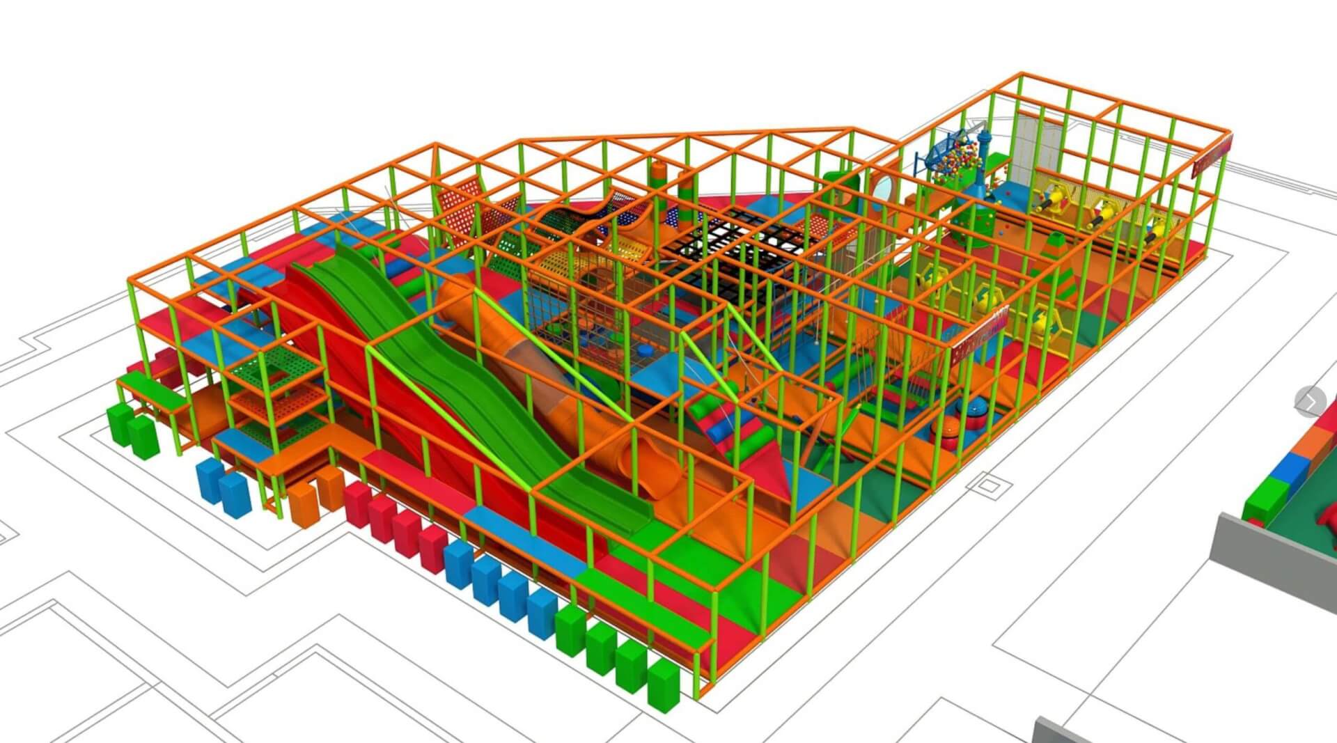 With a bright, playful color scheme, the attraction offers a variety of activities that encourage kids to explore and stay active. The obstacle course challenges their agility, while the slides and soft play areas provide a safe yet thrilling experience. This project brings a perfect balance of fun and physical activity, creating an exciting environment for kids to unleash their energy and imagination.