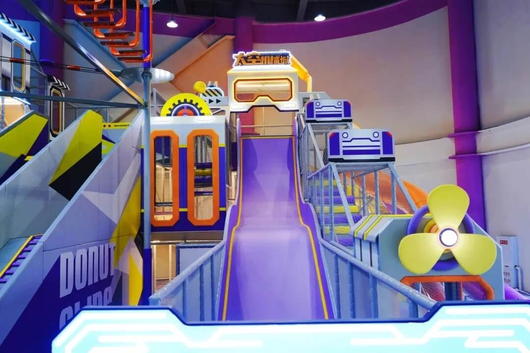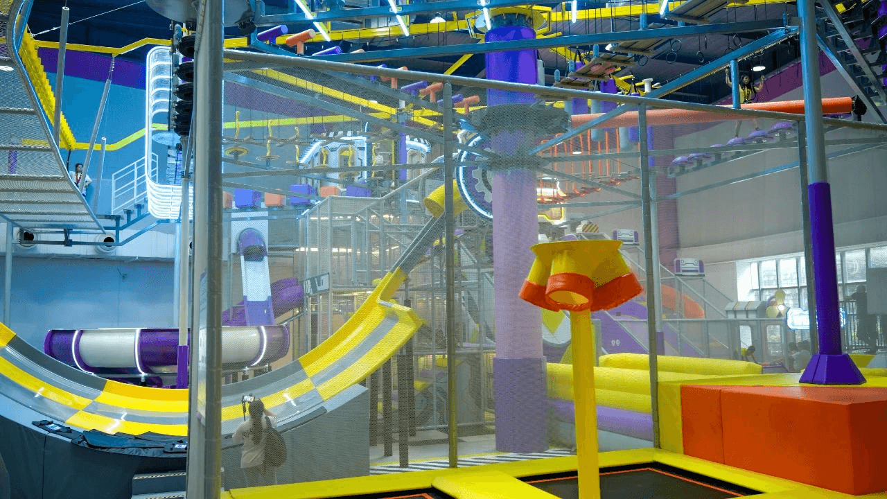 The facility’s core is a towering Large Adventure Course including Rope Courses, Trampolines, Super Runio and Gaint Slides, offering challenging, multi-level activities for older children and teens. Complementing this is a meticulously designed Toddler and Children Play Zone, which incorporates a variety of engaging soft play and interactive elements such as Rainbow Net. This center expertly uses its extensive space to provide a comprehensive, high-capacity athletic and entertainment experience.