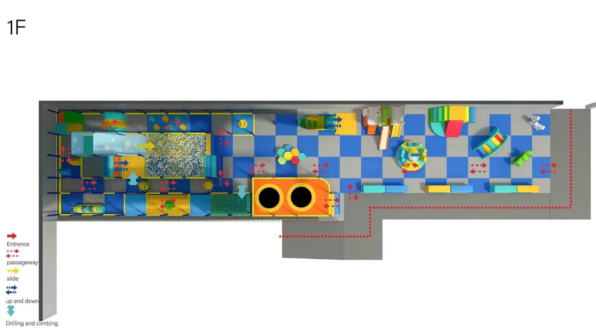 The playground features a colorful blend of obstacles, slides, and soft play elements, encouraging kids to explore, climb, and slide in a safe and exciting environment. The bright, bold colors and interactive structures make it visually appealing and fun, ensuring an unforgettable playtime experience.
