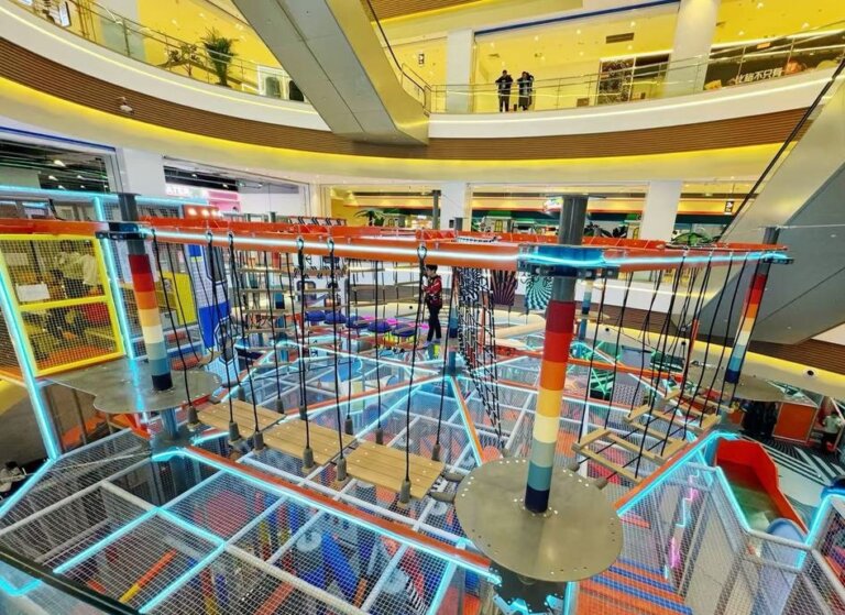 Welcome to Funlandia’s Sports & Play Paradise! Get ready for an action-packed adventure designed for energetic kids and families. Our state-of-the-art facility features a range of thrilling activities, including thrilling slides, trampoline zones, rope courses, an indoor playground, and interactive sports challenges that keep everyone moving and engaged.
