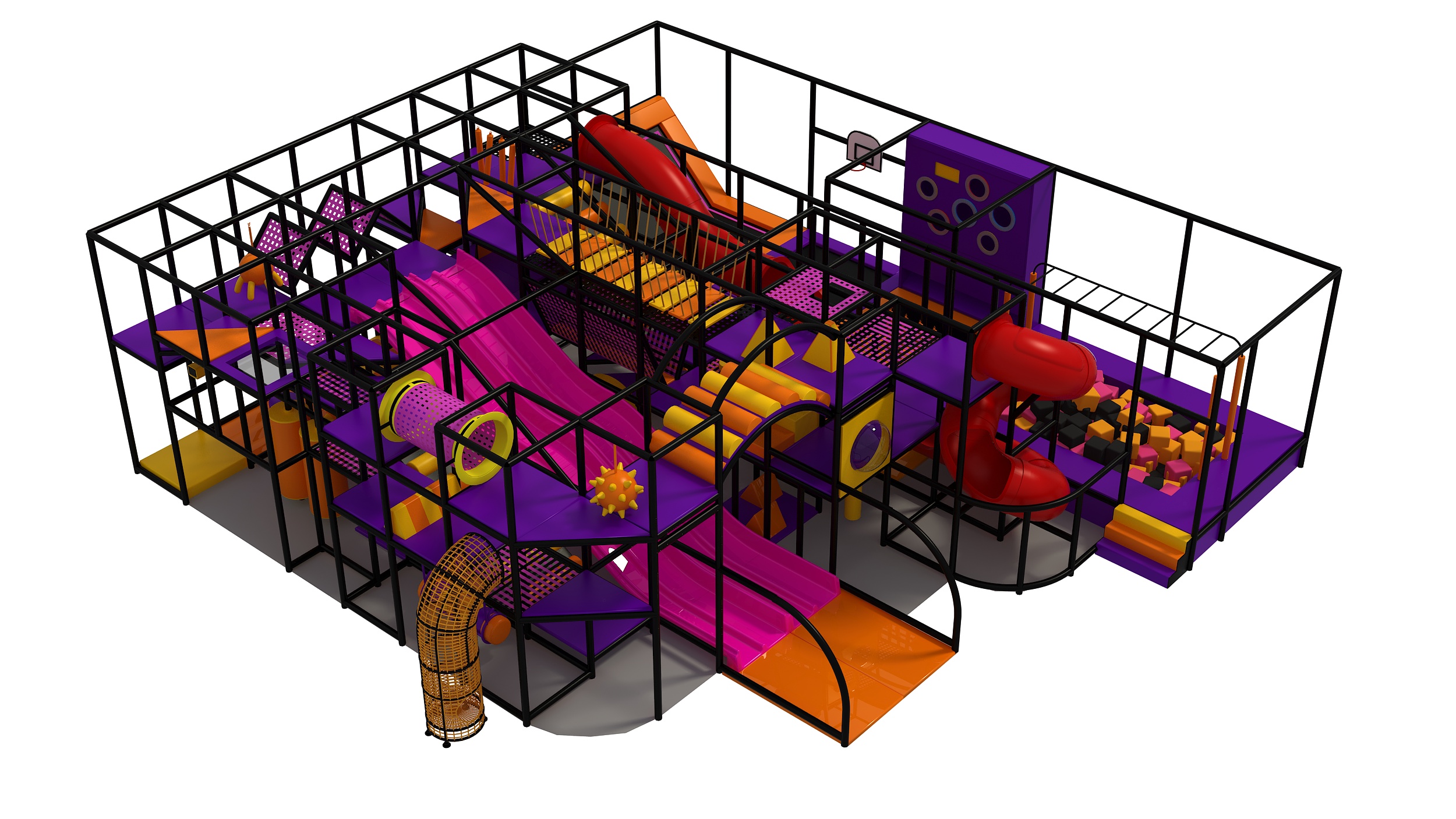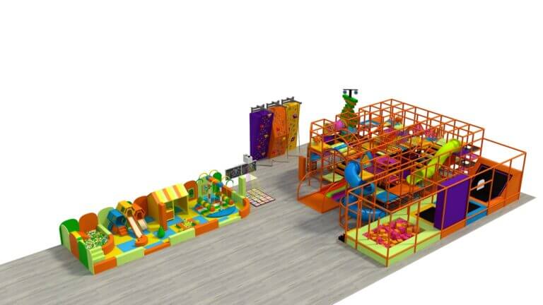 Funlandia designed the GRANDES CELEBRACIONES playground in Panama, a dynamic and safe indoor play space centered around trampolines and a “Little Ninja Academy” theme. The park features a variety of interactive elements, including soft play areas, climbing walls, and challenge obstacles. Bright and soft colors create an aesthetically pleasing environment, promoting early education through visual engagement. The layout is optimized to encourage play for both children and adults, incorporating lighting effects that enhance the experience. This vibrant playground maximizes space and offers endless opportunities for fun, ensuring a perfect balance of adventure and safety for families.
