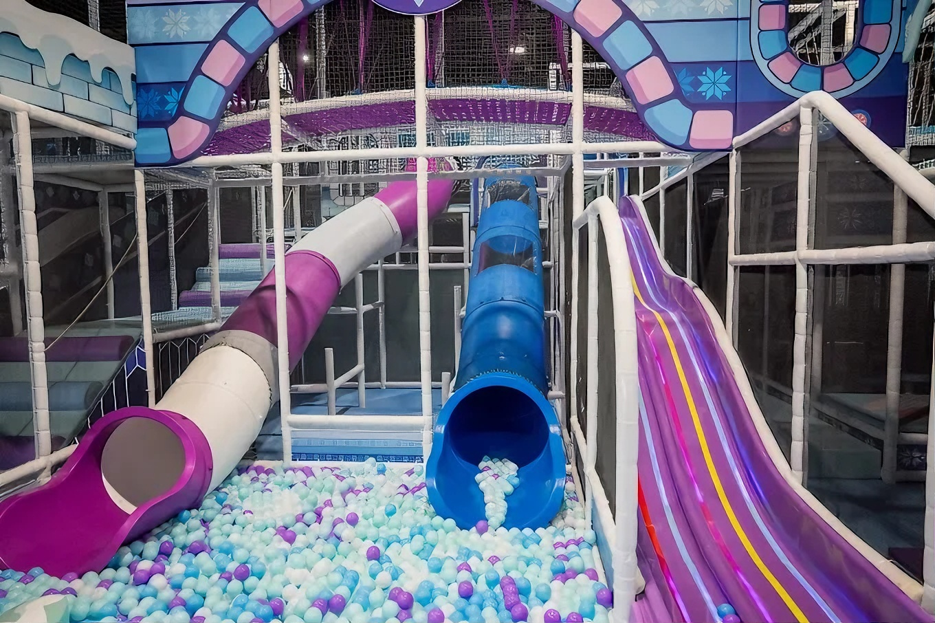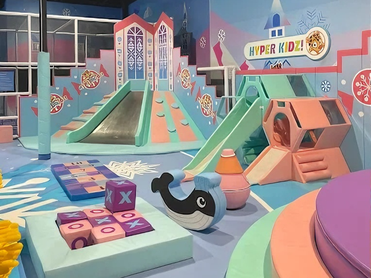 Funlandia created the Hyperkidz Family Entertainment Center in Niles, USA, designed especially for children. The park features a vibrant Indoor Playground, Ball Pool, and engaging Wall Game zones, all customized to highlight the brand’s playful identity .