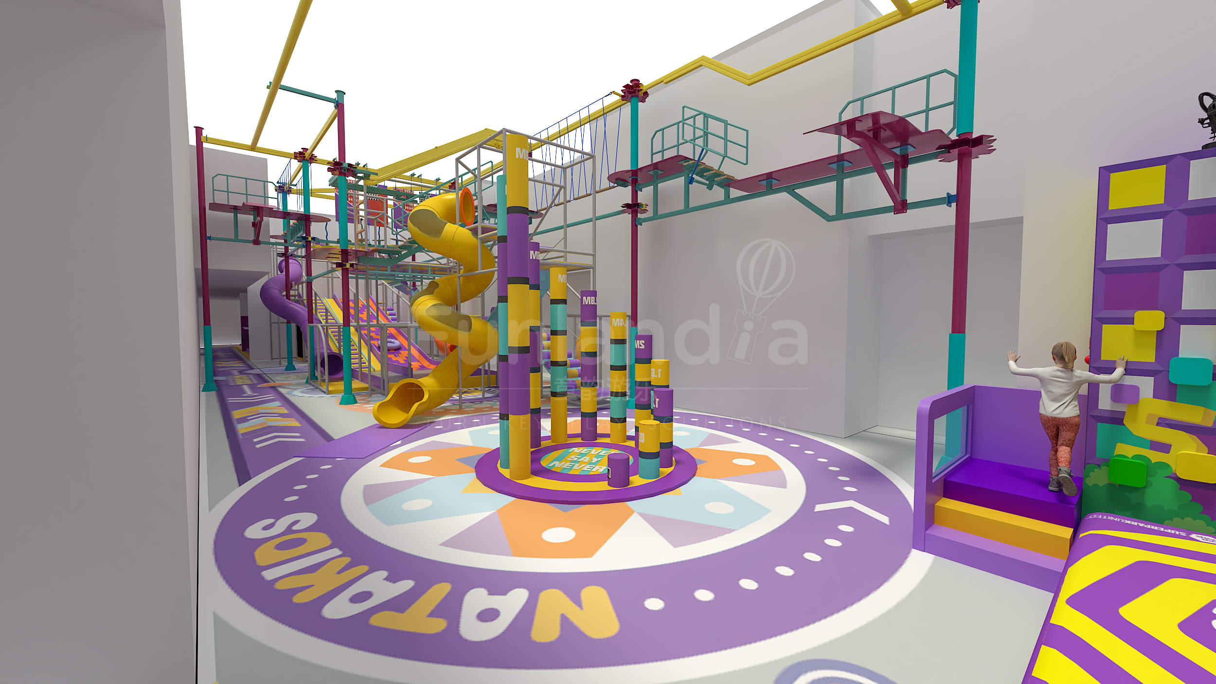 Trampoline Park, Rope Courses, Climbing Wall, Ball Pool, Interactive Games -