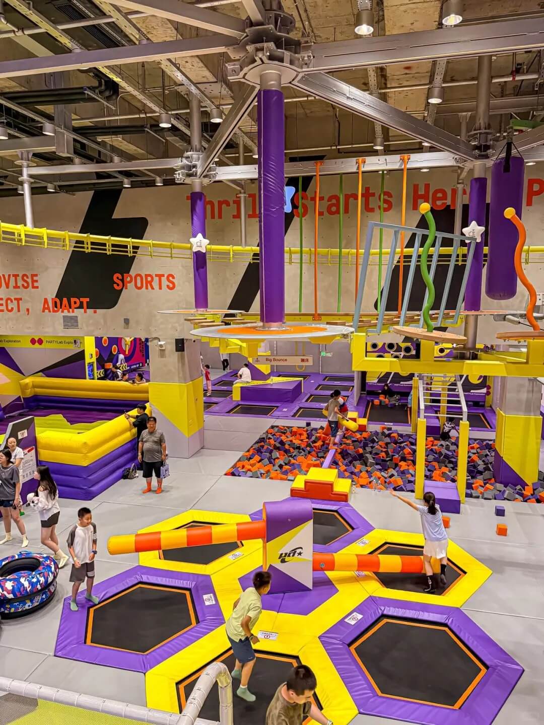 Trampoline Park, Warrior Challenge Courses, Rope Courses, Rail Fly, Climbing Wall, Super Runio -