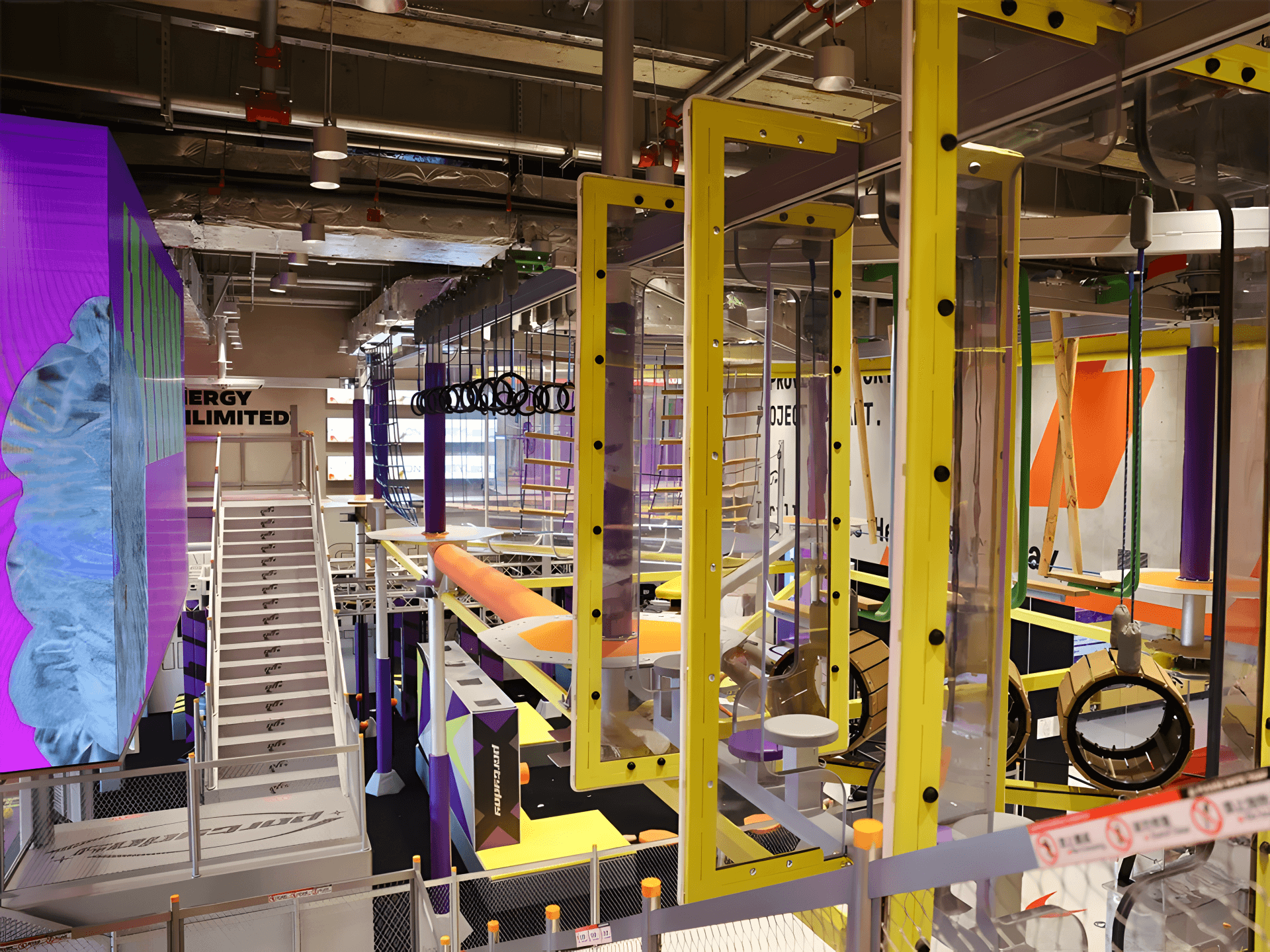 This vibrant space is packed with an exciting array of attractions, including challenging Climbing Walls and Rope Courses, a demanding Ninja Warrior course, and a large trampoline park. The Super Runio provides the ultimate challenge, encouraging friendly competition and thrilling experiences. The visually striking design, with its vivid and attractive colors, creates an energetic atmosphere that perfectly matches the spirit of its young clientele.