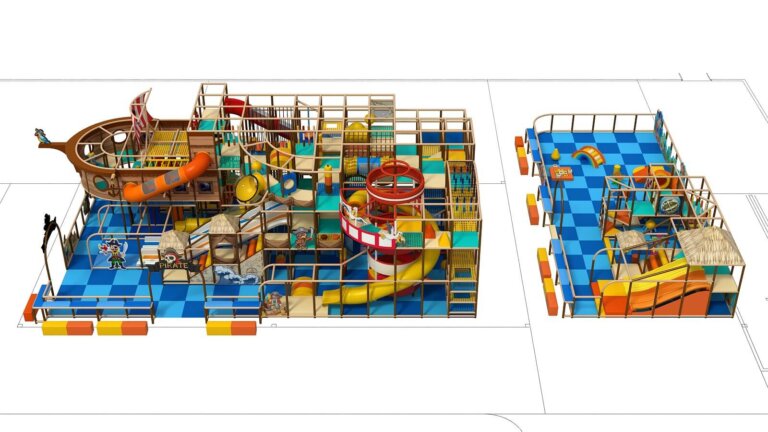 Set sail for adventure with Funlandia’s latest indoor playpark in the USA, where the excitement of a pirate voyage comes to life! Our creative team has seamlessly merged dynamic play structures with immersive pirate-themed elements, transforming every corner into a world of exploration and imagination. The centerpiece is a massive, soft playground shaped like a pirate ship, complete with slides, tunnels, and challenging obstacles, inviting children of all ages to climb aboard and discover hidden treasures. Vivid colors, playful details, and interactive features ensure that every visit feels like a brand-new adventure on the high seas.