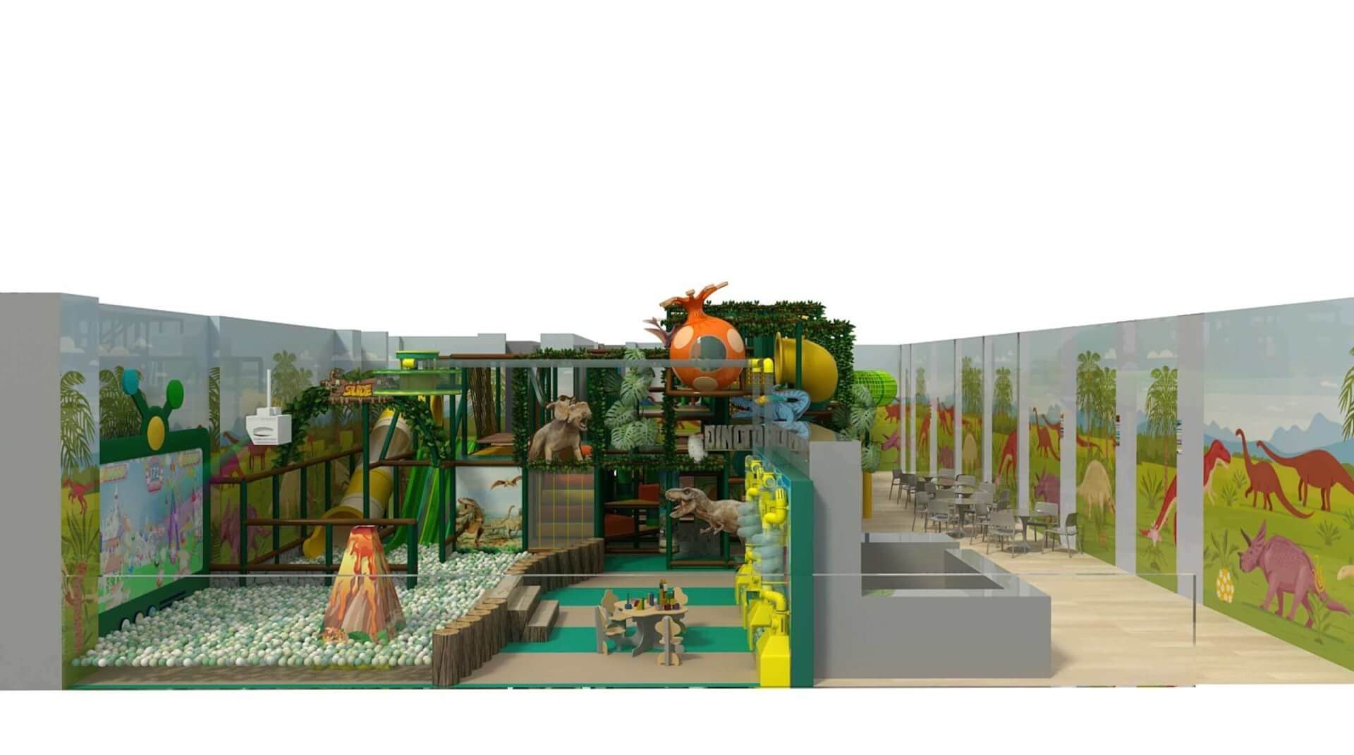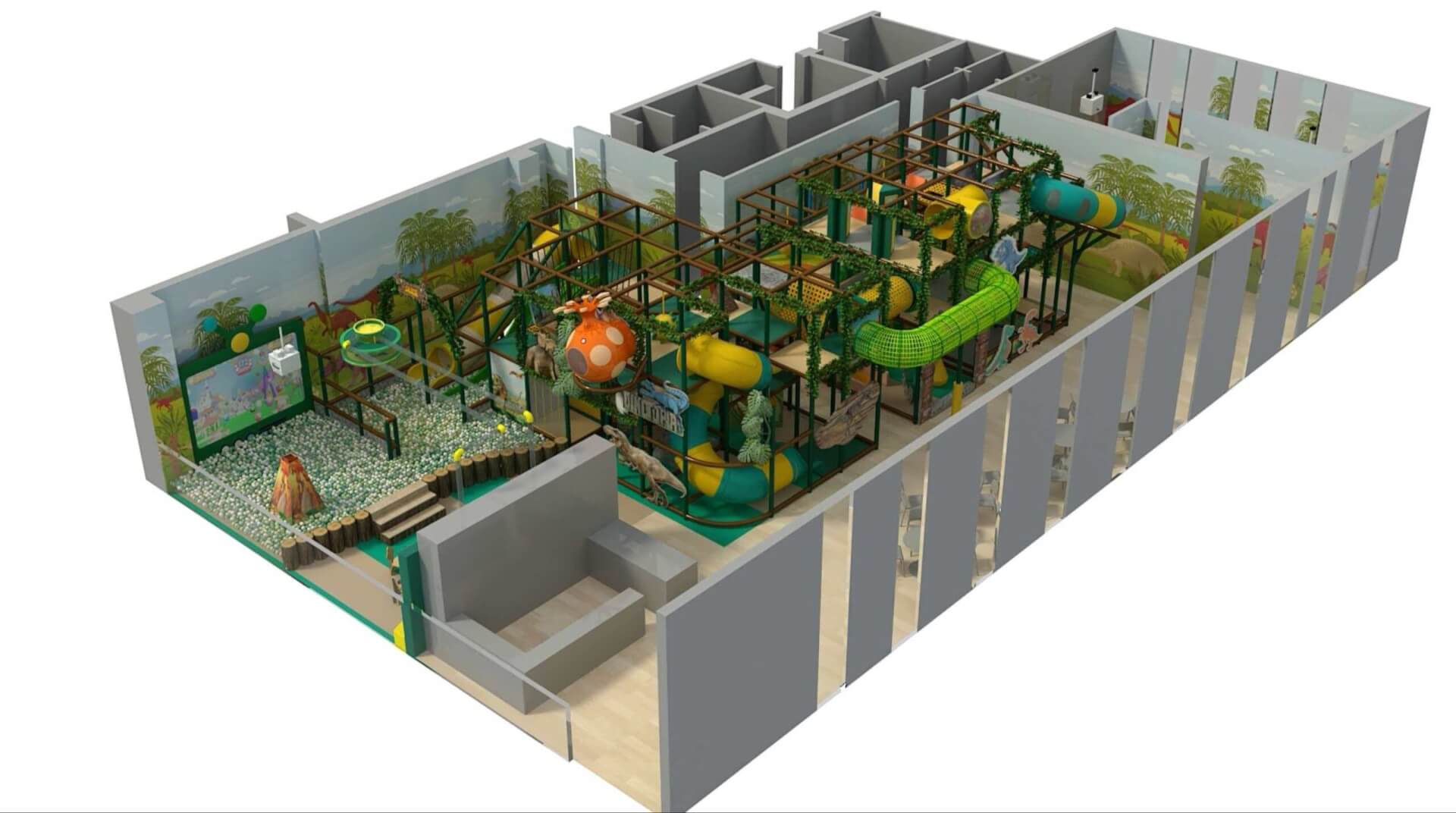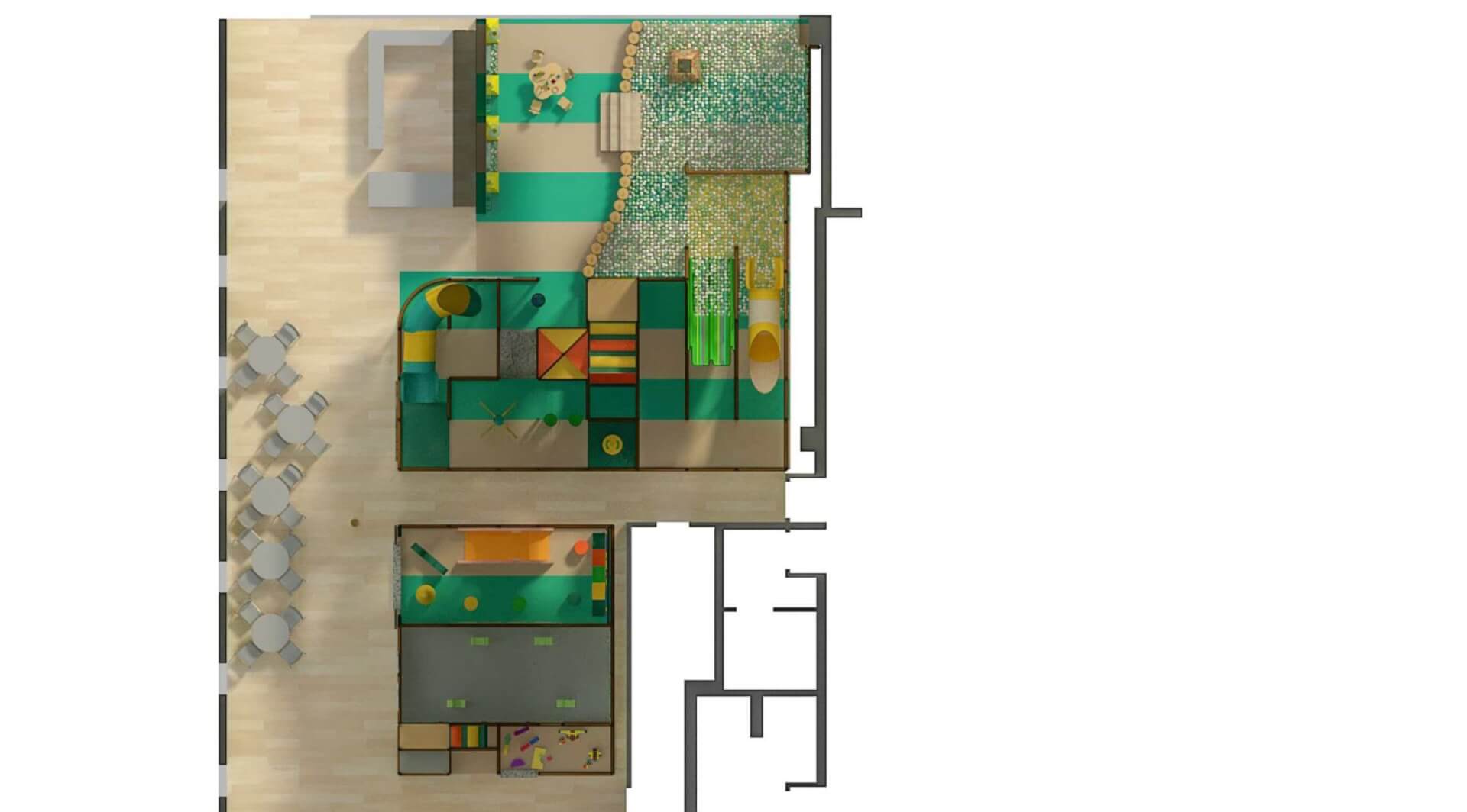 The innovative design maximizes space by incorporating soft play elements and vibrant lighting, creating an immersive environment for children. With a focus on both fun and safety, the play area encourages active play while ensuring a visually appealing experience.