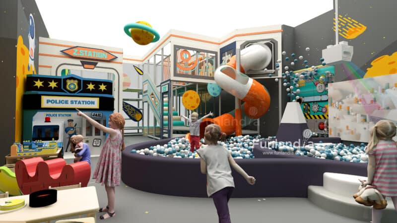 Our designers have created a playful and fantasy-themed design that will ignite the imaginations of children while providing early education facilities. The park features various attractions, including a toddler soft play, ball pool, indoor playground, and pretend play areas.