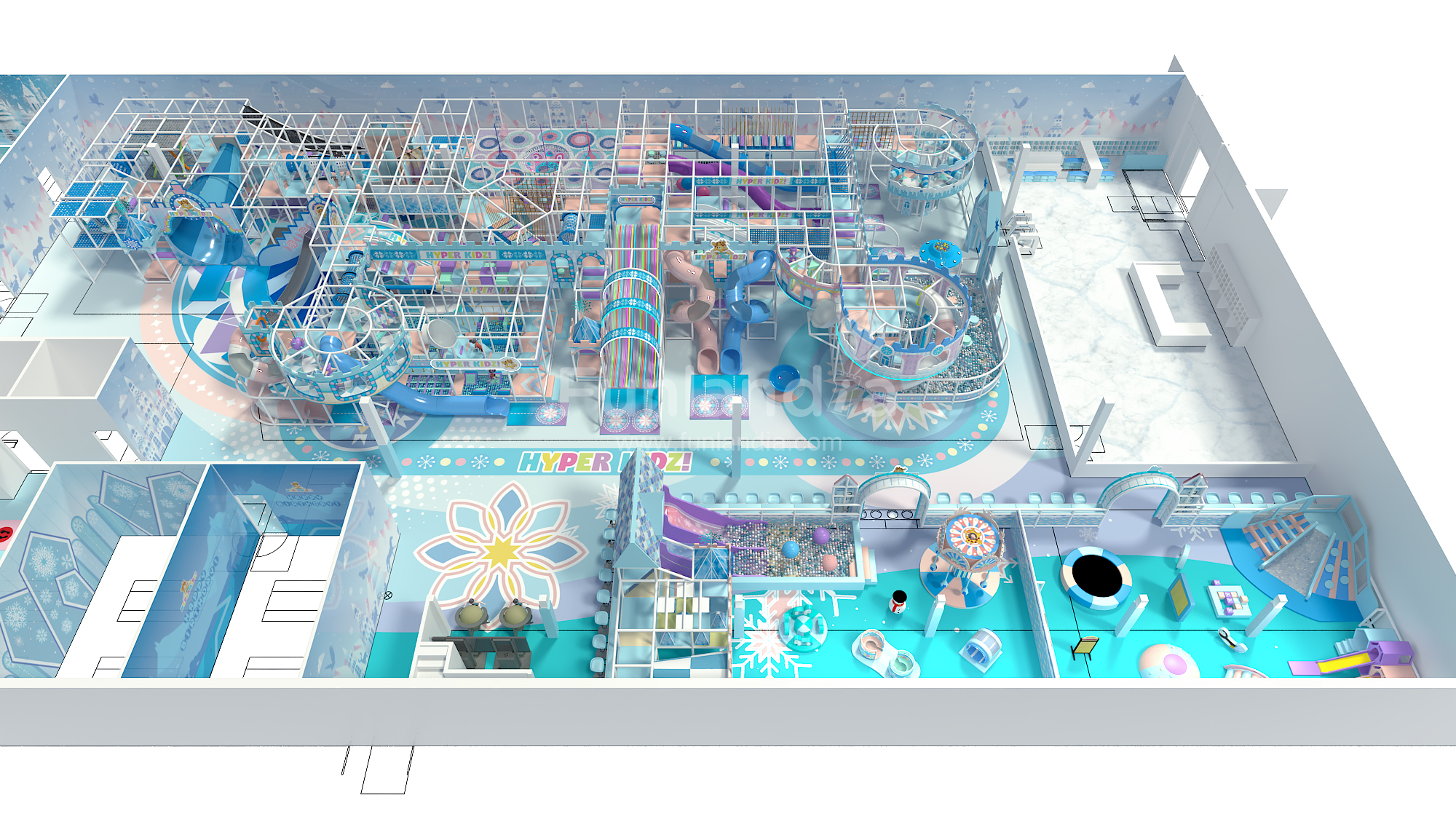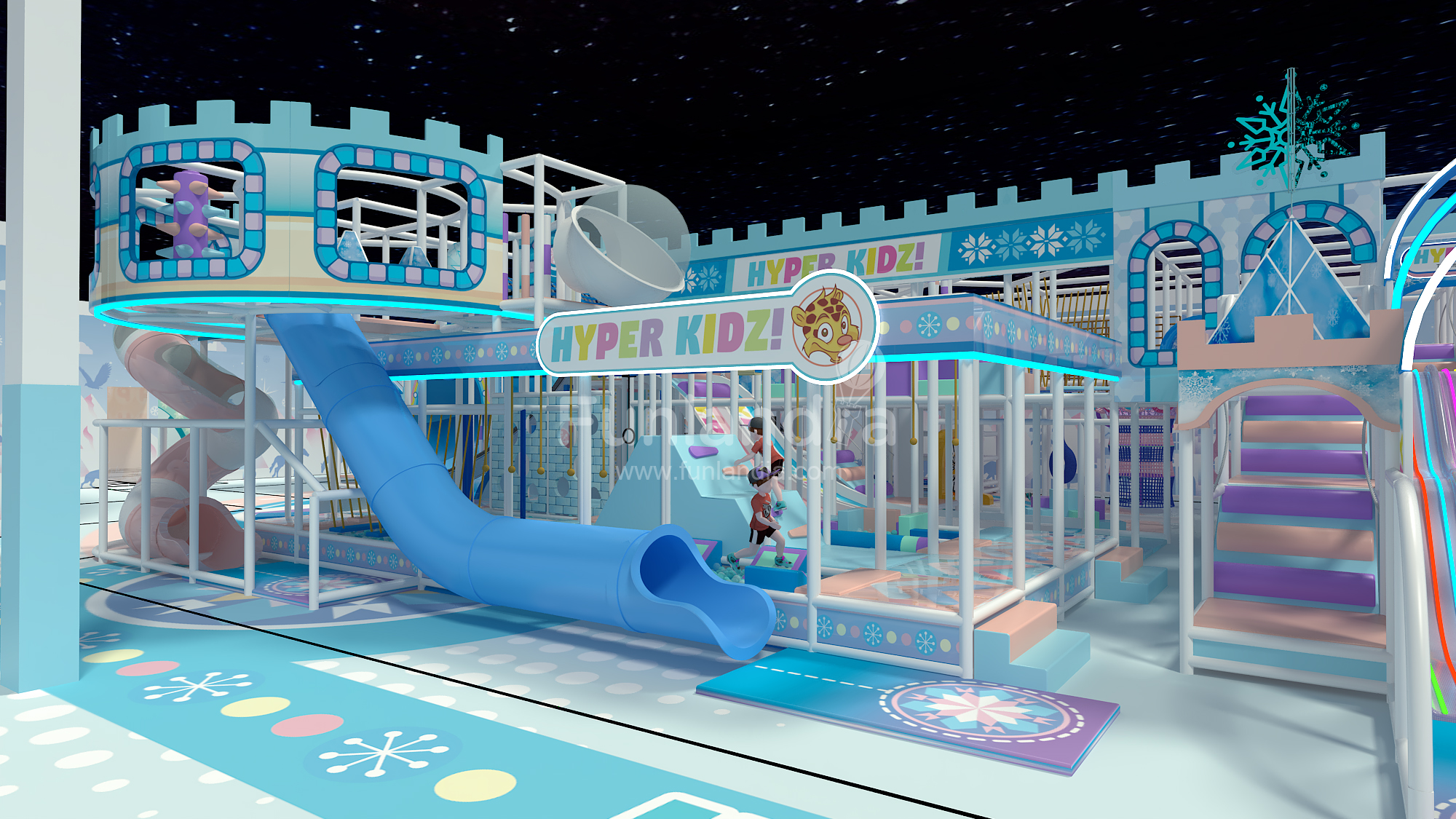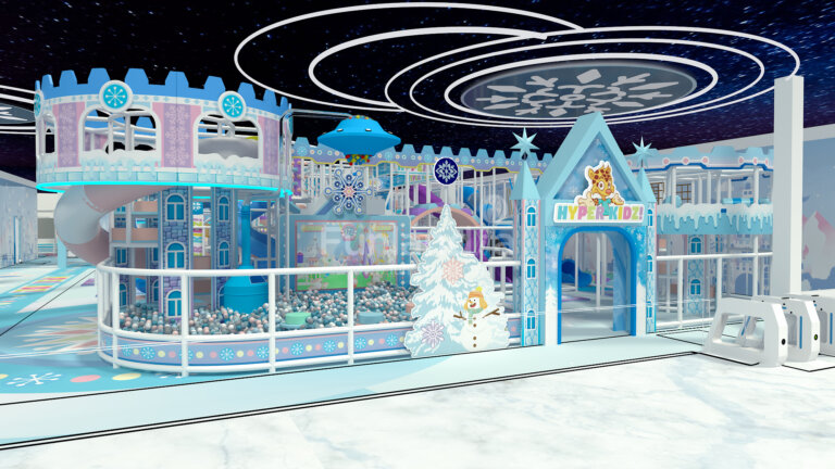 Funlandia created the Hyperkidz Family Entertainment Center in Niles, USA, designed especially for children. The park features a vibrant Крытая игровая площадка, Шаровой бильярд, and engaging Настенная игра zones, all customized to highlight the brand’s playful identity .